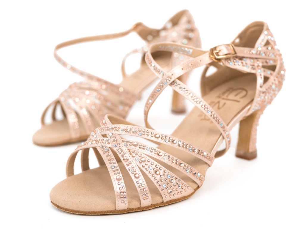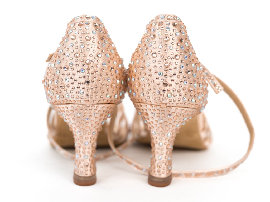 Vă prezentăm noul brand cehesc Elza, creat special pentru dansatoarele exigente. Pantofii de dans Elza sunt realizați din materiale exclusive de înaltă calitate. Pentru producerea acestor pantofi am ales un satin bej închis, extrem de lucios și rafinat (fabricat de aceeași companie care produce satinul pentru Supadance). Acest tip de satin, atât de exclusiv și strălucitor, nu se regăsește la alți pantofi de dans de pe piață, iar în această variantă pantofii arată cu adevărat spectaculos. Sunt singurii pantofi de dans care dispun de tocuri silențioase cu strat dublu, excelent echilibrate și perfect stabile. Talpa interioară este de asemenea căptușită și confecționată din microfibră de calitate superioară, ce absoarbe eficient umezeala.