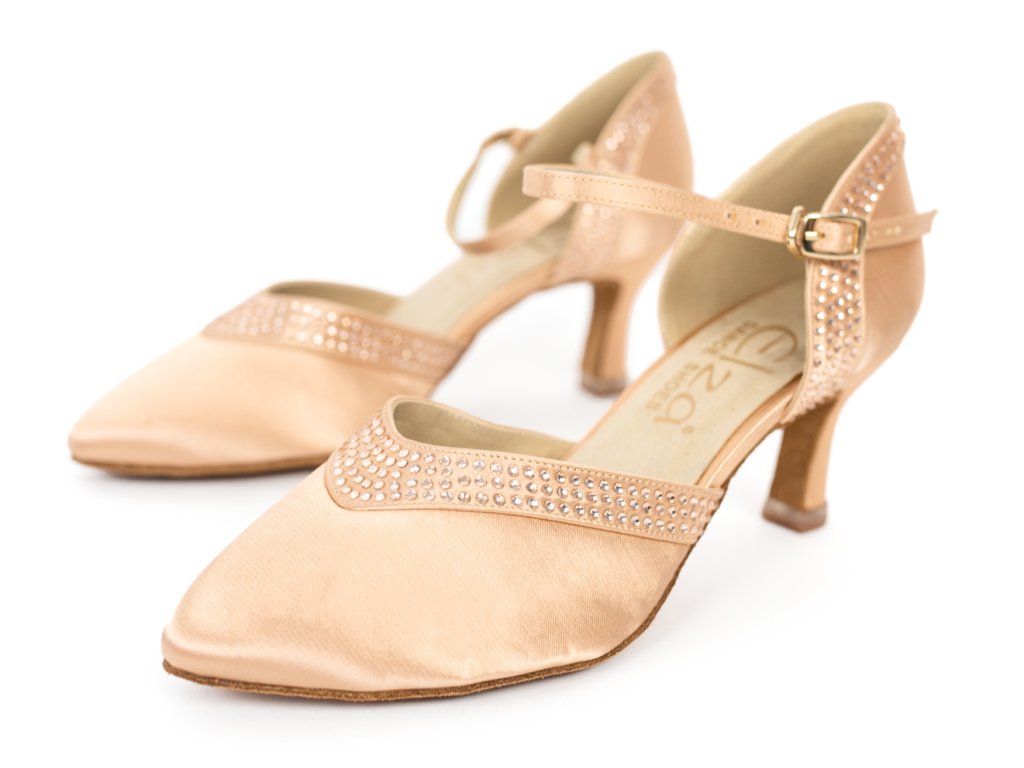 Vă prezentăm noul brand cehesc Elza, creat special pentru dansatoarele exigente. Pantofii de dans Elza sunt realizați din materiale exclusive de înaltă calitate. Pentru producerea acestor pantofi am ales un satin bej închis, extrem de lucios și rafinat (fabricat de aceeași companie care produce satinul pentru Supadance). Acest tip de satin, atât de exclusiv și strălucitor, nu se regăsește la alți pantofi de dans de pe piață, iar în această variantă pantofii arată cu adevărat spectaculos. Sunt singurii pantofi de dans care dispun de tocuri silențioase cu strat dublu, excelent echilibrate și perfect stabile. Talpa interioară este de asemenea căptușită și confecționată din microfibră de calitate superioară, ce absoarbe eficient umezeala.